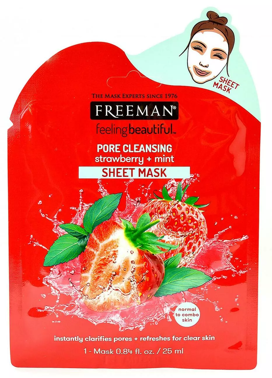 Feeling Beautiful Тканинна маска для обличчя очищуюча пори Полуниця і М'ята (саше) 25мл